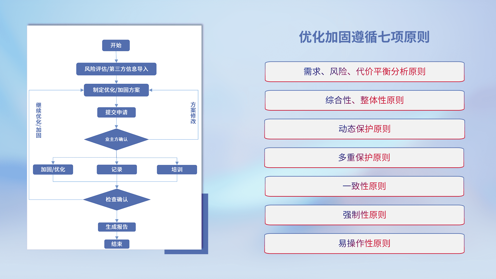 最大程度利用现有资产,,,,对评估发现的问题进行封堵与整改,,,,防止漏洞被利用,,,提升整体网络安全性,,,,为客户带来高标准的优化加固服务。。。